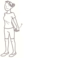 後ろ手に組む
